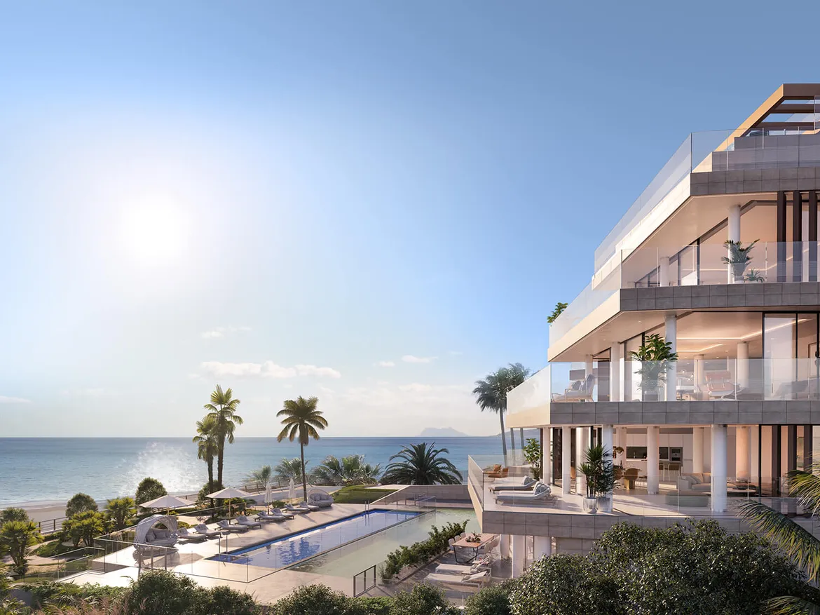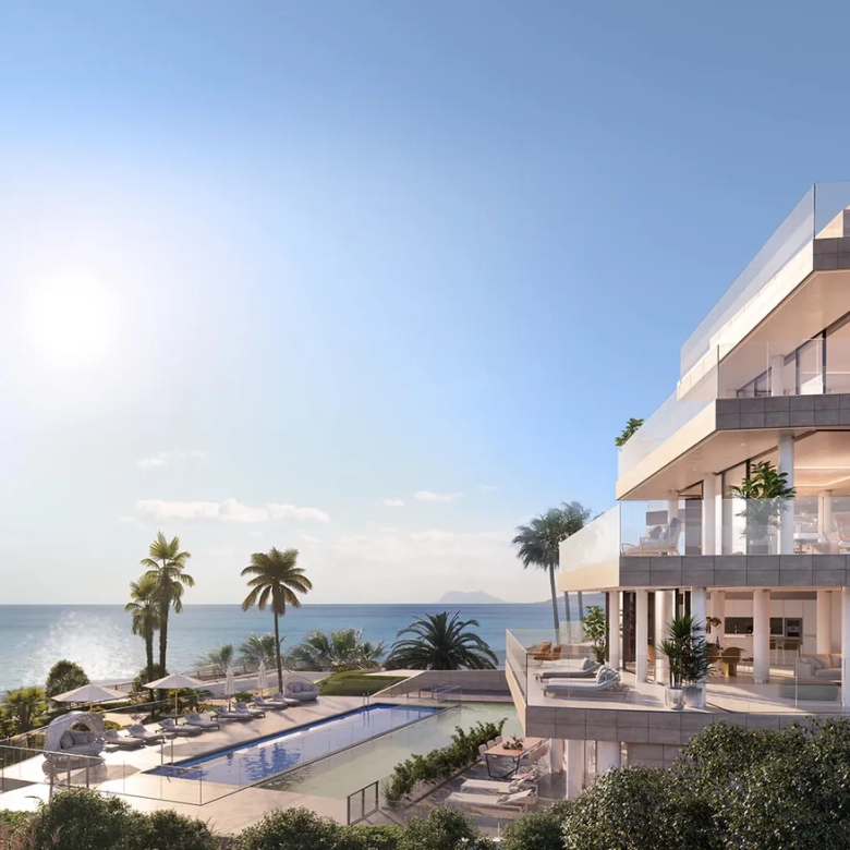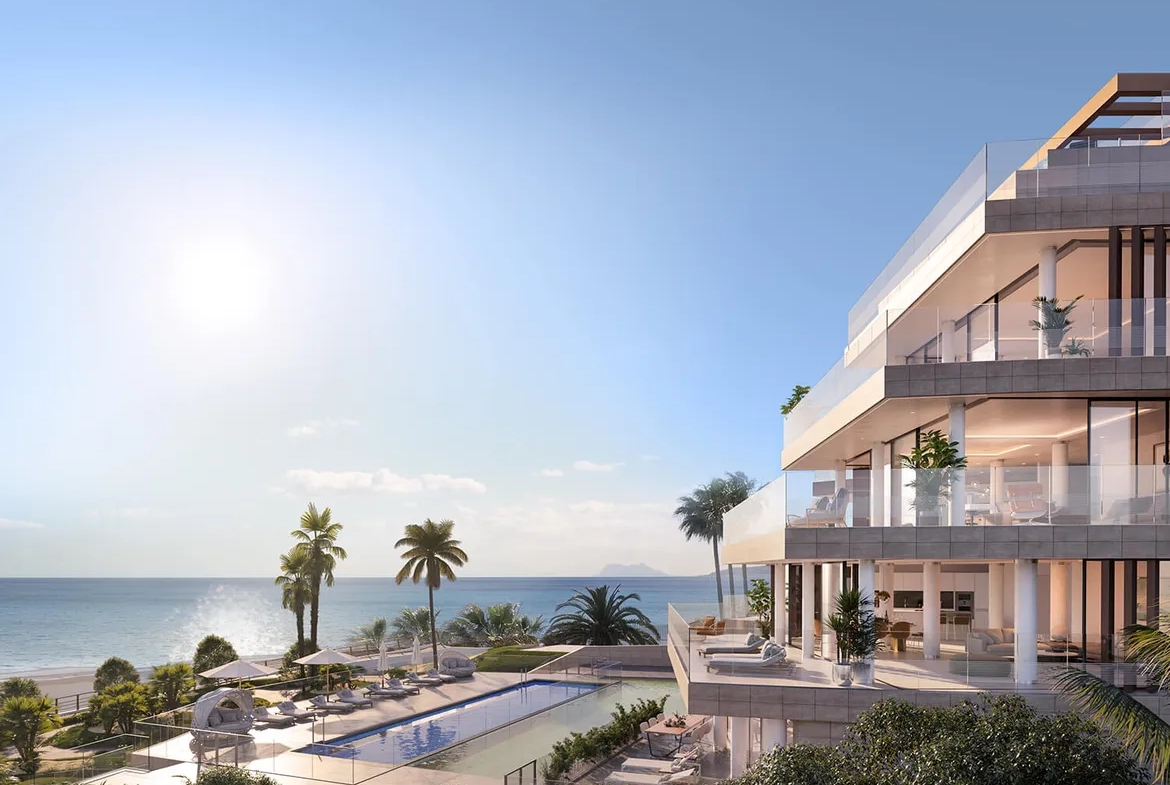 Luxusní ultramoderní vilové plážové apartmány s top polohou, soukromím a wow výhledy na moře a pláž ve městě Estepona