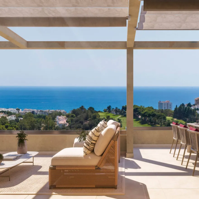Velké prosklené plochy vpouštějí přirozené světlo do každé místnosti, zatímco otevřené prostory vedou na spektakulární terasy s nekonečnými výhledy na Golf Torrequebrada a Středozemní moře. Orientace budov od východu na západ po západním svahu zajišťuje, že každý domov si užívá hojného slunečního světla během celého roku.