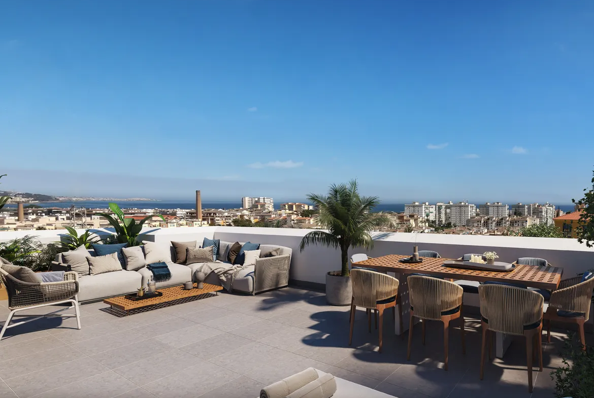 Terasy jsou ideální pro užívání si vnějšího života. Můžete zde jíst, relaxovat, číst nebo cvičit a zároveň si užívat krásného výhledu. Komplex také nabízí společné zahrady a bazén se slanou vodou.