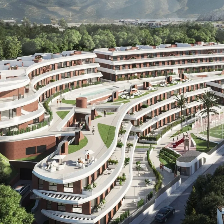 80 nových moderních apartmánů se 2 nebo 3 ložnicemi, 2 koupelnami a velkými terasami.