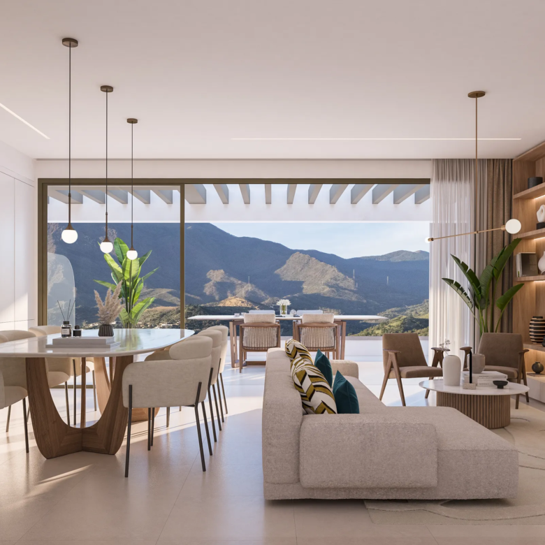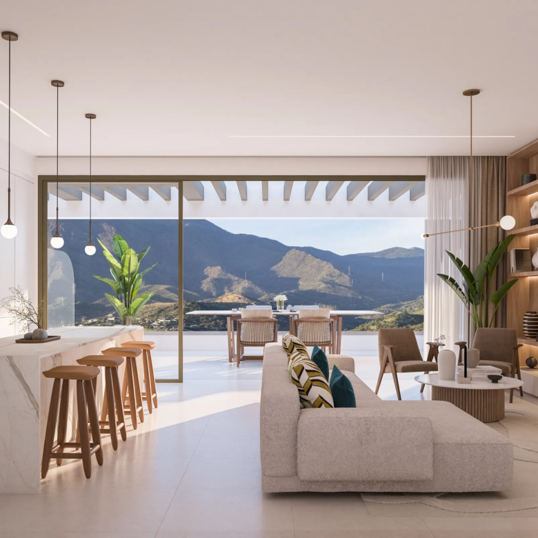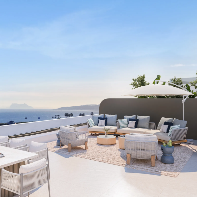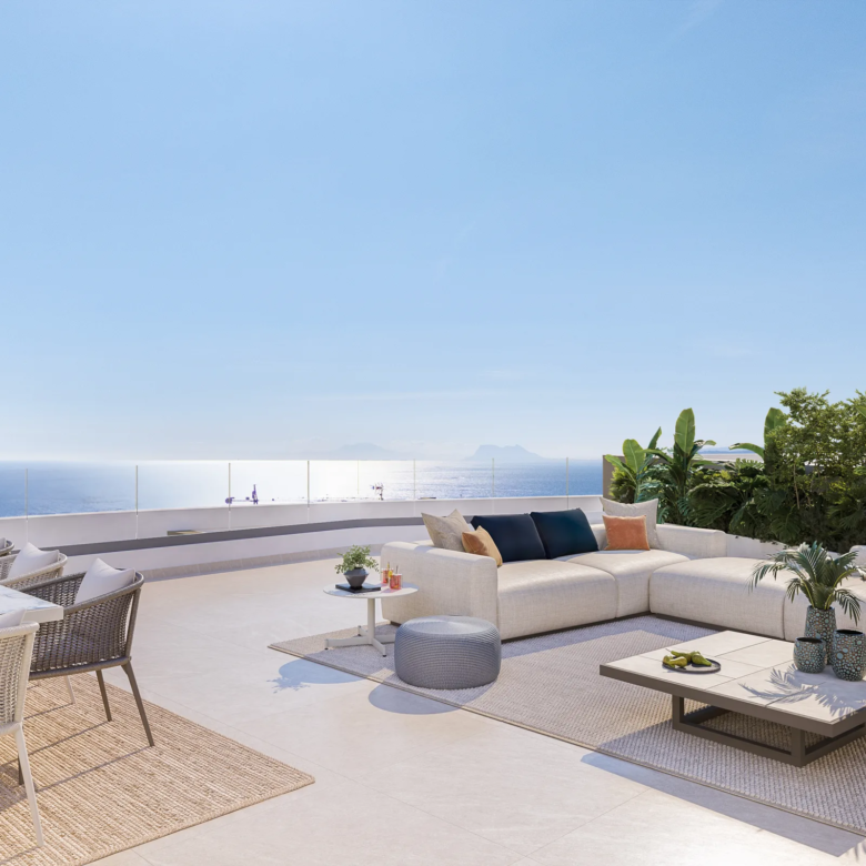 Apartmány se dvěma terasami nabízí dechberoucí pohledy na majestátní pohoří Sierra Bermeja i na azurové vody Středozemního moře. Prostorné terasy plné denního světla vytvářejí ideální prostor k relaxaci, stolování pod širým nebem a obdivování jedinečných scenérií.