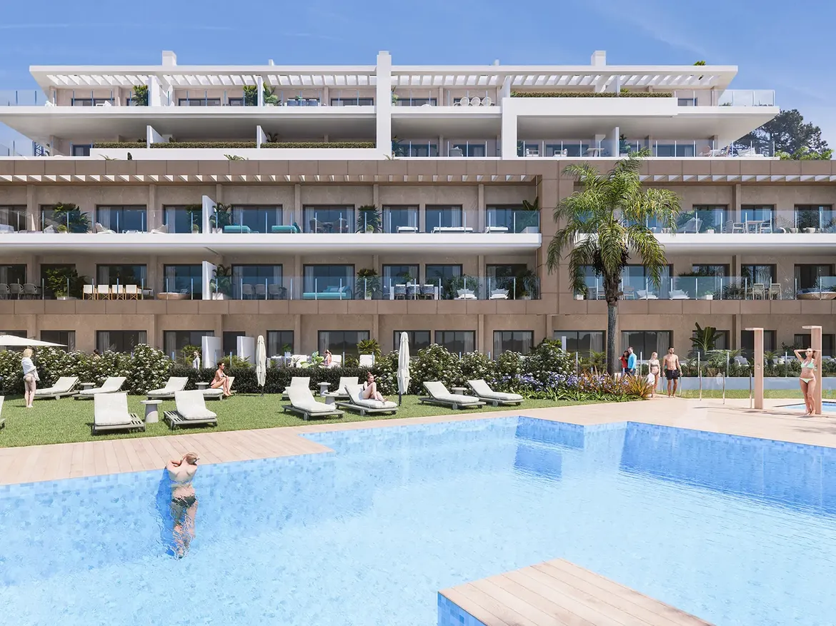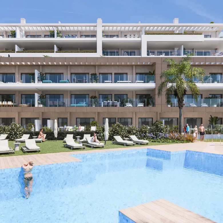 Nové apartmány a dvojvilky s s úžasným výhledem na pobřeží a moře v těsné blízkosti parku Selwo, golfu a pláží v oblíbené oblasti New Golden Mile.