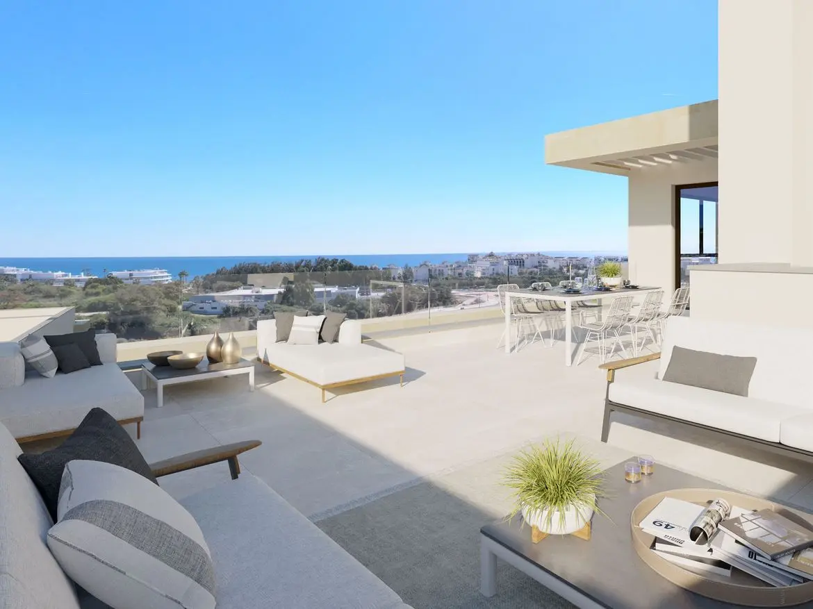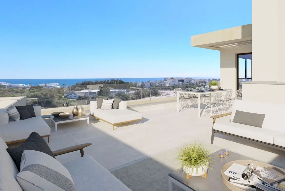 Nový moderní komplex s výhledy na moře vedle pláže, golfu a centra města Estepona.