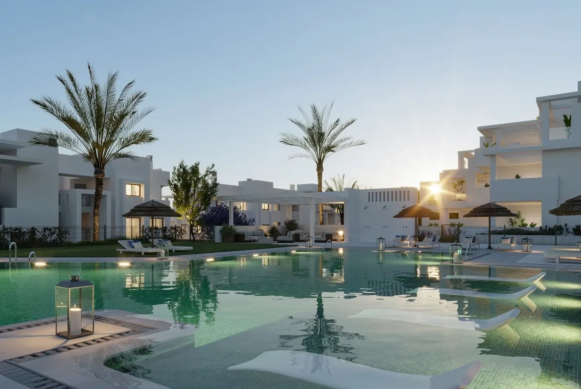 😍 Oblast je klidnější, ale v pěší vzdálenosti od pláží, vybavenosti, zelených parků s dětskými hřišti, sportovních hřišť a na skok od golfu, nemocnice a centra města Estepona s kompletní občanskou vybaveností.