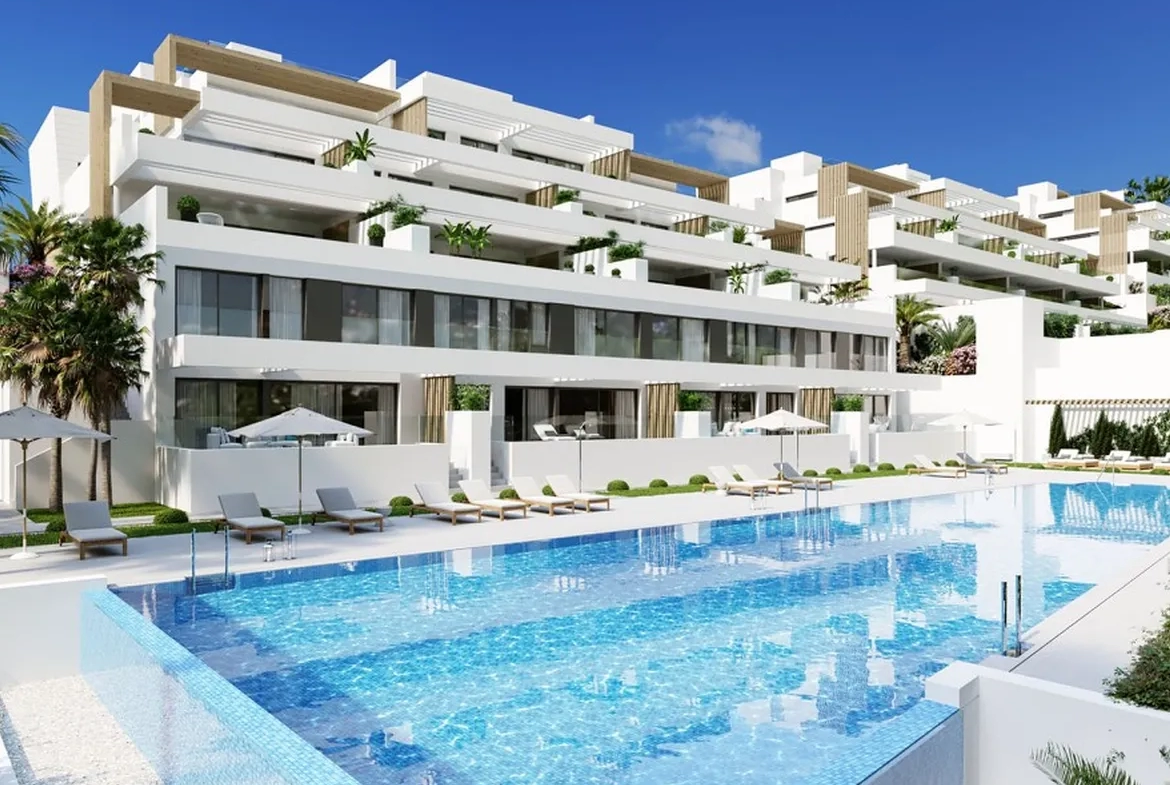 Nový moderní apartmán s výhledem na moře v populární oblasti města Estepona, v pěší vzdálenosti od vybavenosti, sportovních možností, centra města i plážové promenády, malebného přístavu a úžasných písčitých pláží.