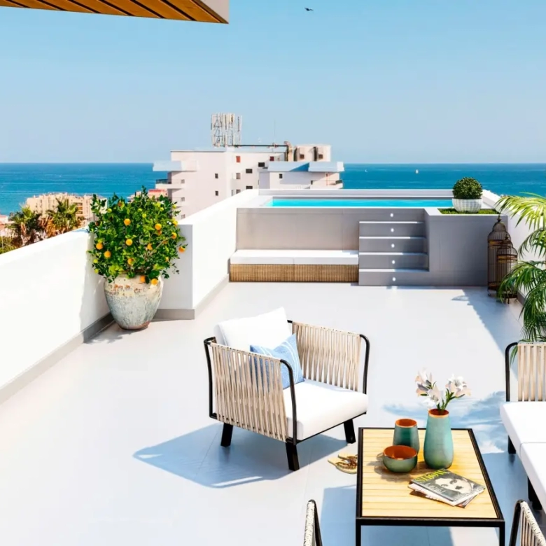 Malý exkluzivní projekt s moderními apartmány u pláže, vybavenosti a s výhledem na moře v Torremolinos (Malaga, Španělsko).