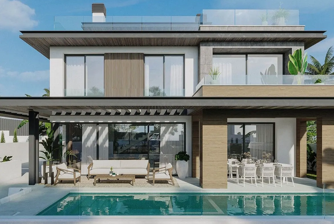 Nové luxusní vily s výhledy na golf a more v Mijas Costa - Calanova golf (Malaga, Španělsko).