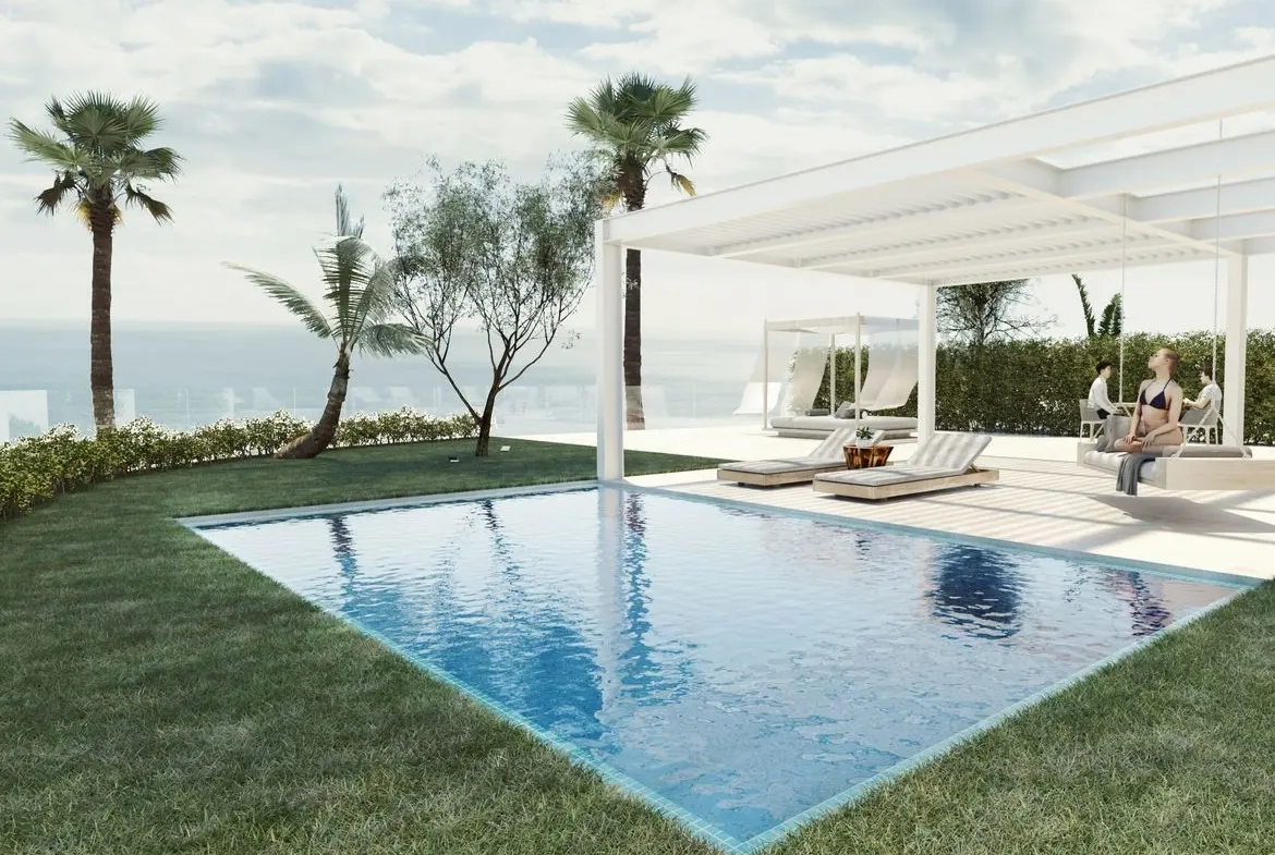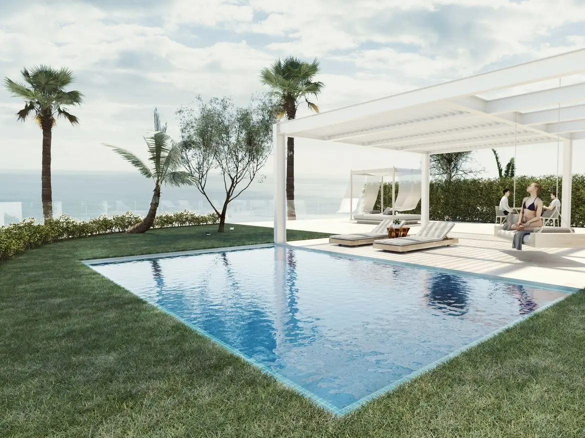Nádherná nová moderní luxusní vila u pláže s výhledem na moře a na skok od centra a golfu v Mijas Costa (Malaga, Španělsko).