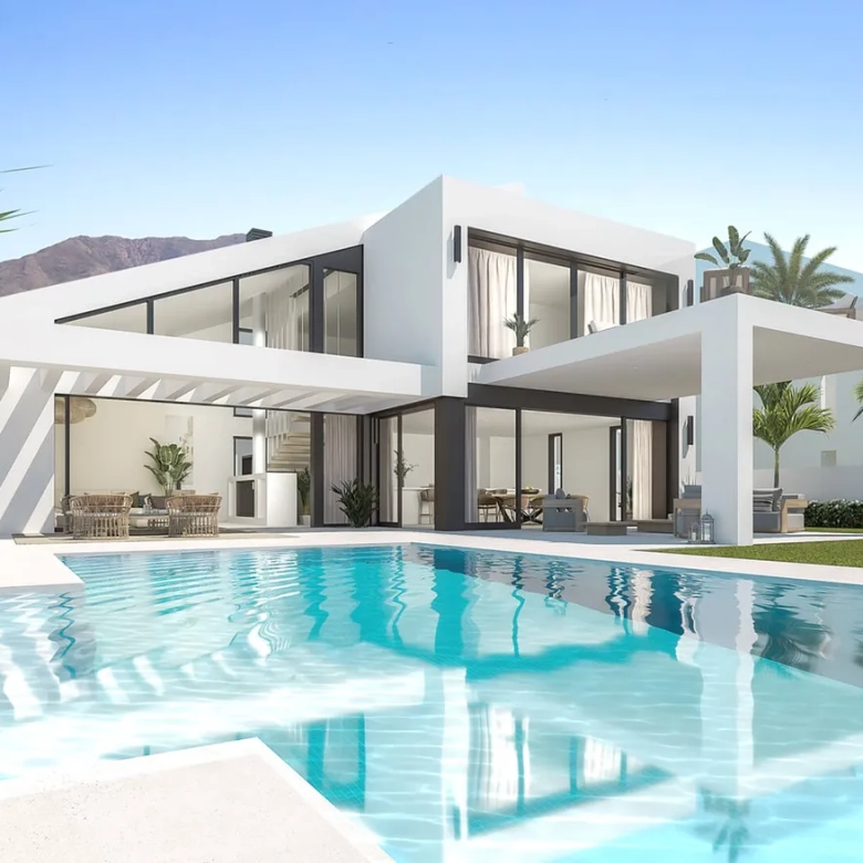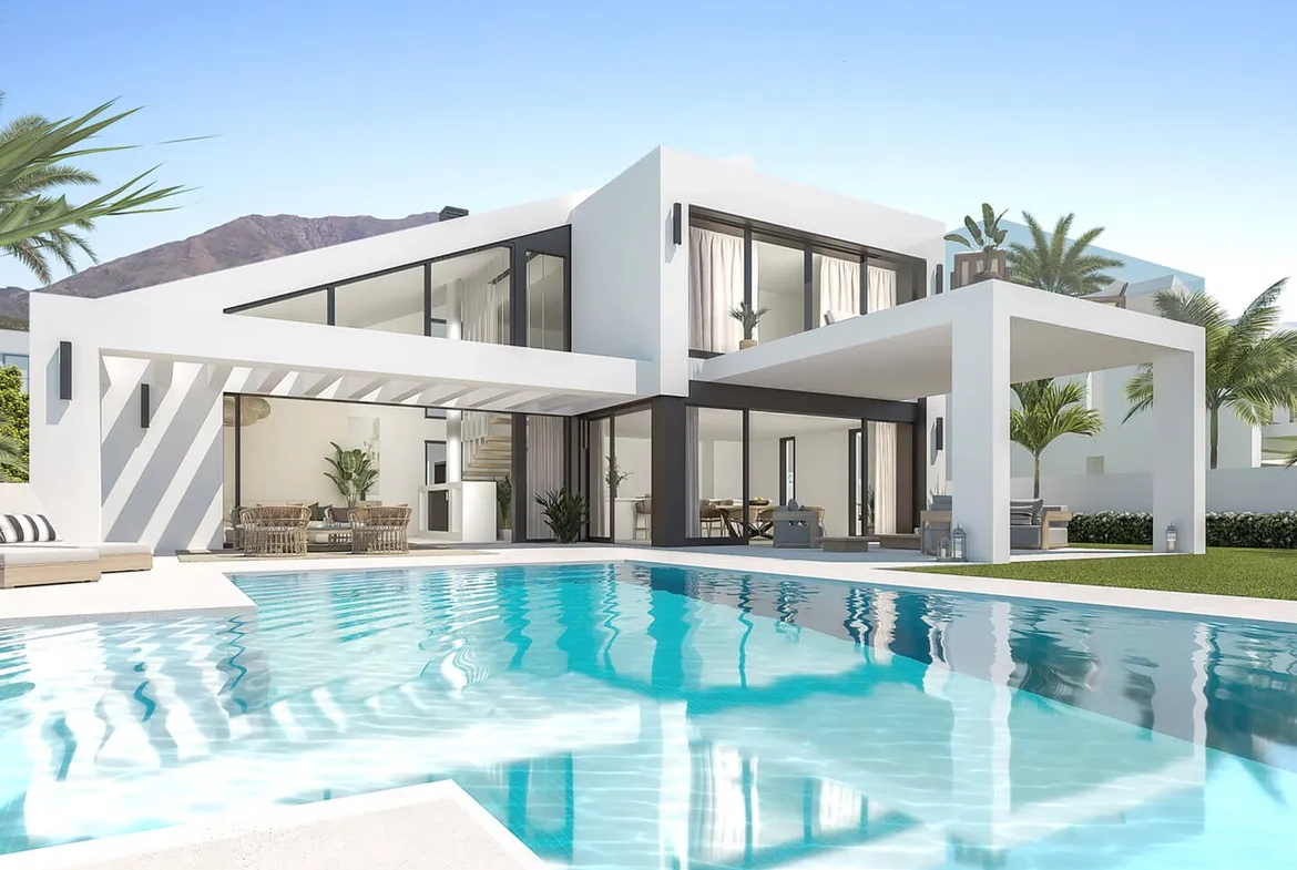 Nový projekt s moderními luxusními vilami v těsné blízkosti golfového hřiště a pláže v Mijas Costa – El Chaparral.