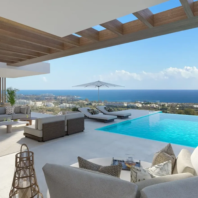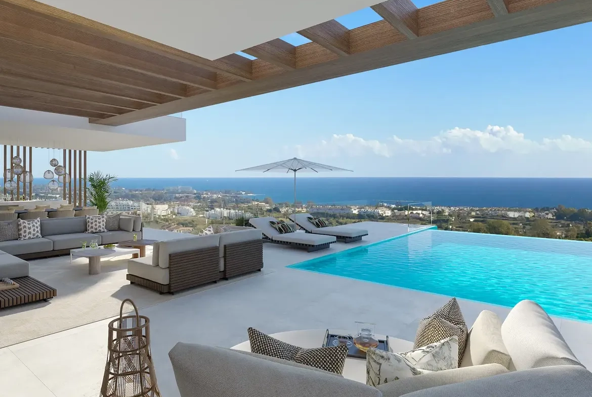 Nové exkluzivní luxusní vily s panoramatickými výhledy na pobřeží a moře, na skok od golfových hřišť, pláží a centra města Estepona, Puerto Banús nebo Marbella.
